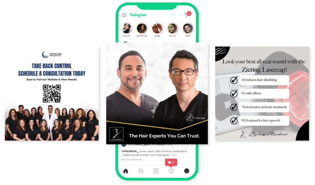 We work extensively with FUE/FUT surgeons, SMP studios, regenerative medicine practices, and med-spa clinics offering hair-loss solutions.